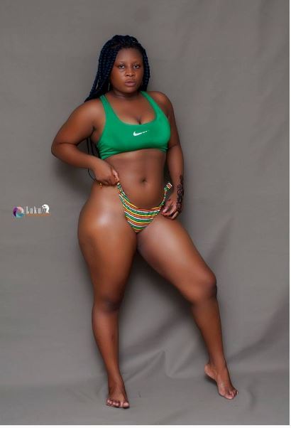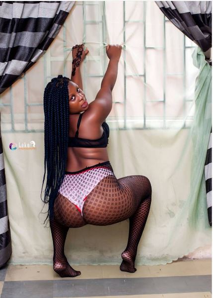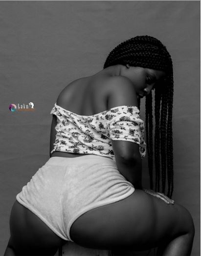 "Bae wey no dy hear word All she does is stick to hustling" is her welcome message on Instagram. Her explicit photo-shoot is currently being managed by Lakun Studios free of charge after she was approached on social media by a photographer in charge.