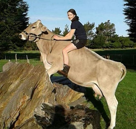 A New Zealand girl who didn’t have a horse growing up has taught her cow to jump instead,