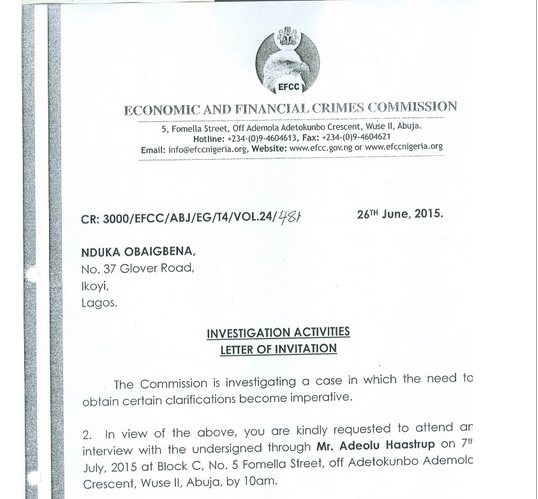 A copy of the invitation letter obtained by SaharaReporters shows that Mr. Obaigbena was scheduled to report at the commission’s headquarters in Abuja on July 7.