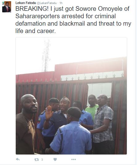 Policemen in Lagos have arrested Saharareporters owner and publisher, Omoyele Sowere in Lagos for criminal defamation, blackmail and threat to life.