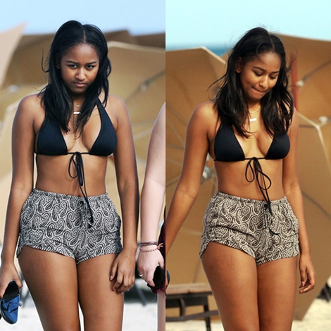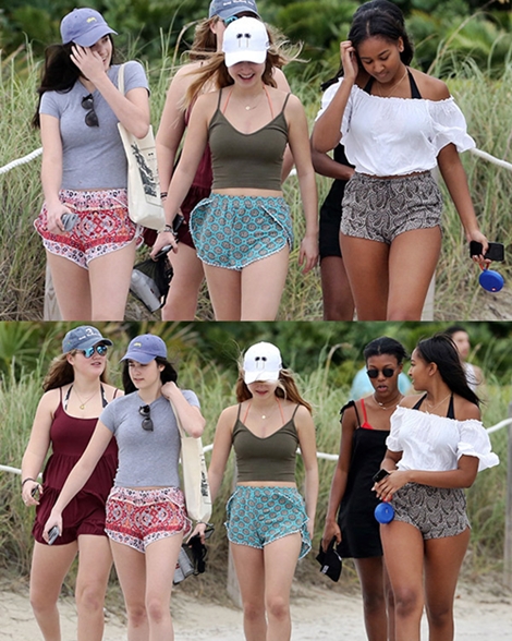 Sasha Obama, the stunning 15-year-old daughter of President Barrack Obama, who is done taking her school exams, was pictured as she stepped out with a group of her best friends, where she strutted her flawless beach body around the coast of Miami on Sunday.