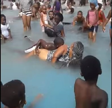 The video which has been circulating on social media captures the moment the 10-year-old son is seen removing the woman's panties before climbing on top of her at a crowded beach as people watched.
