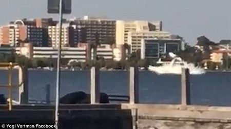 The plane broke apart on impact, with nearby police boats rushing to the scene along with rescue crews.
