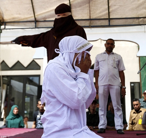 Brought to tears by Sharia justice: Shocking photos have emerged showing how a Woman was forced to endure 26 agonizing lashes of cane for having s*x outside of marriage in Indonesia.