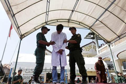 Dailymail, show how the woman was forced to kneel on the ground on the public stage in front of a mosque in Indonesia's Aceh province.