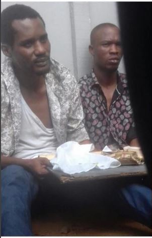 A distraught Seun Egbegbe alongside his unnamed accomplice on handcuff