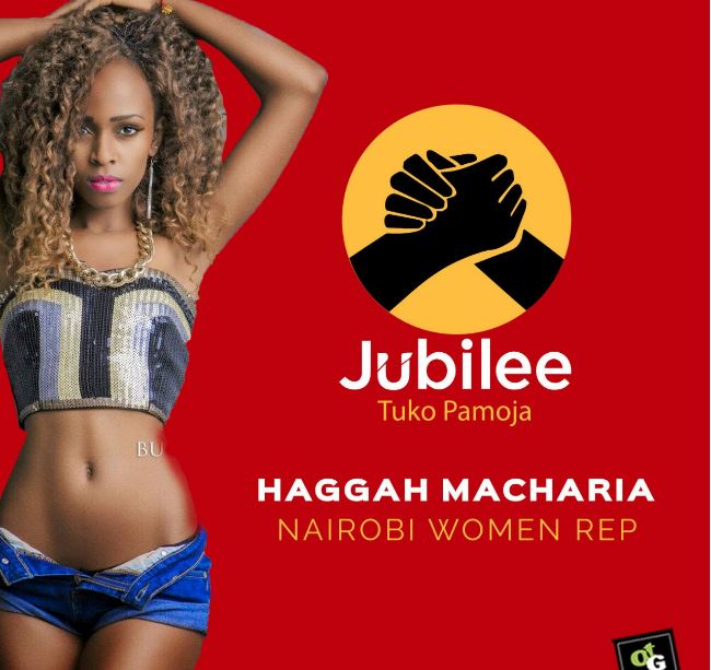 The alluring posters of a lady, Haggah Macharia campaigning for a political post under the Jubilee Party - Kenyan most popular political party, has been making the rounds on Kenyan’s social media space.