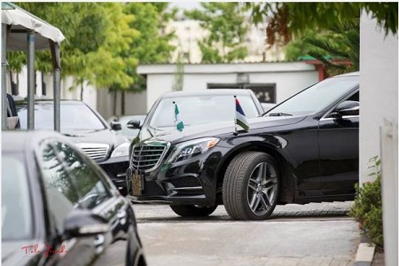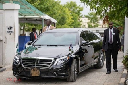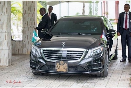 President Muhammadu Buhari's official car seems to be eyecatching and presidential indeed. He is driven in a Mercedes Benz S550 2015 Model. See photos of the exotic vehicle: