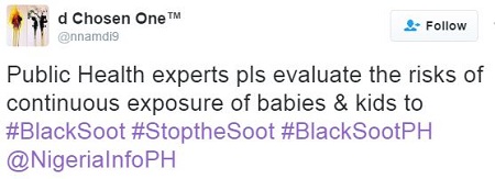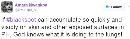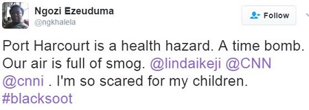 Residents of Rivers State, Port Harcourt precisely, are lamenting the pollution of their air by black soot and have revealed the fears they have concerning their health.