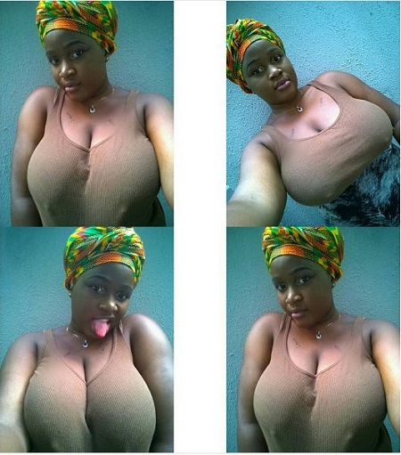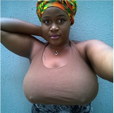 Vickie Ama is a young Ghanaian girl who has realized that her gigantic boobs are her selling point. The dark-skinned lady has overtime maintained the culture of not wearing a bra when taking pictures. The purpose of this is to keep her big nipples seductively protruding under her shirts.