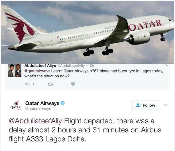 The tyre of a Boeing 767 aircraft belonging to Qatar Airways exploded while attempting to take off at the Murtala Muhammad International Airport, Lagos.