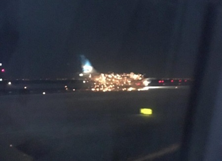 Alice Zhang also tweeted pictures of the blaze, saying: "Yeah so I'm on the runway about to take off and another plane just landed next to us and IT WAS ON F*****G FIRE LIKE LITERAL FIRE.