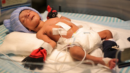 He was born in January to parents Lalitamma and Chennabasava who are at his bedside in India.