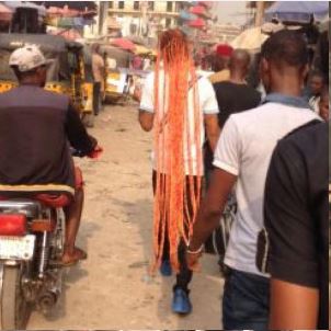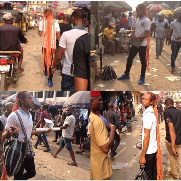 According to social media reports, a young man caused a stir in Onitsha, Anambra State, with his floor-length hair attachment.