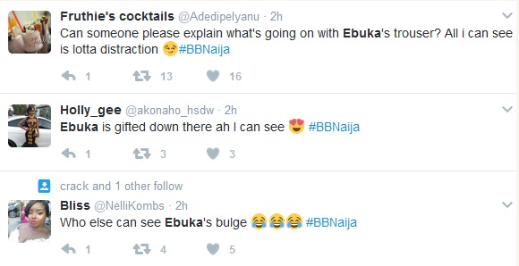 Twitter immediately went agog with mixed reactions and comments and Ebuka later took to the social networking platform to apologize in a hilarious manner over how his huge bulge distracted the show's millions of audience.