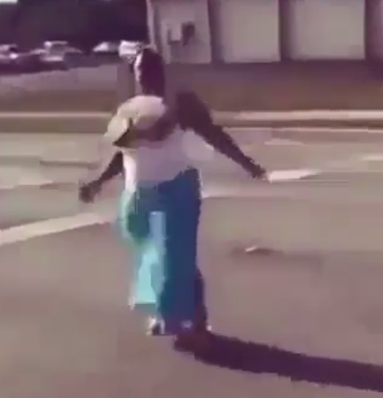 Suddenly while shaking her natural assets so fast, the lady's big breasts suddenly popped out from her top, to the amazement of passer-bys and the person filming her.