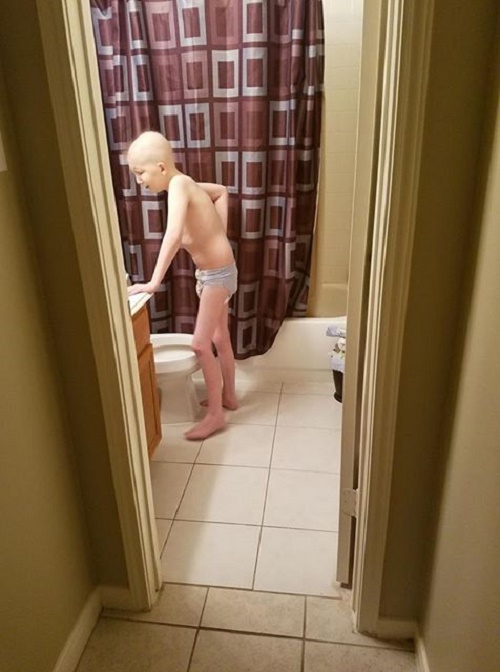 "For anyone battling cancer or enduring chemotherapy. For anyone going through this horrible disease. It is about to get real, real hard and real quick. The picture I'm posting is from this morning, and before you scream and cry 'why would she post a picture of him in a pull up, the indecency', well 1. It doesnt show more than swimming jammers would and 2. Because life is not always politically correct and pretty, it is real. Life isn't pretty, and cancer destroys a person.