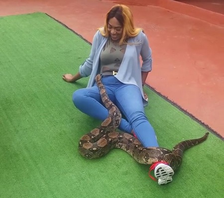 In the videos, Rukky can be seen as she boldly let a python move around her body. She also struck a pose with the snake on her neck.
