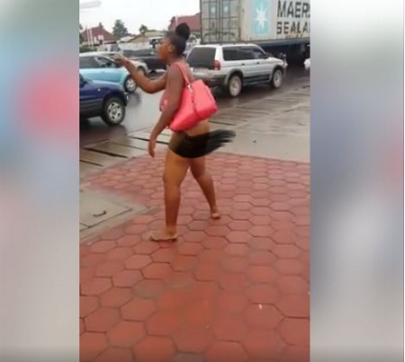 A girl has ran mad in public after she allegedly slept with a man at a hotel forcing her to walk the streets n*ked.