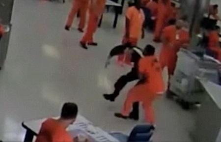 A prisoner has been caught on camera trying to kill a guard right inside the prison where he was being held up as punishment for his criminal act.