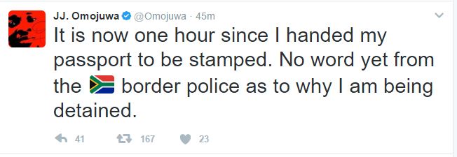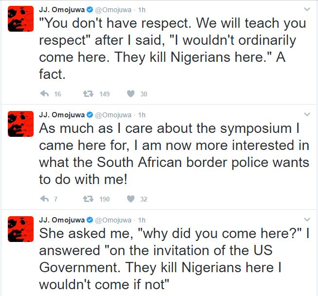 Popular Nigerian social media influencer, JJ Omojuwa is in a serious battle with South African border police following his shock detention.