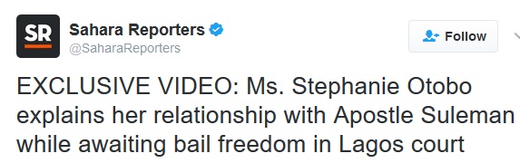 1. Stephanie alleged that Apostle Suleman slept with her in a hotel. While, detailing their stay at an unnamed hotel, she said Suleman asked her to meet him at the hotel where they ate drank and had intercourse after.