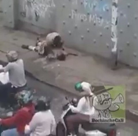 According to The Sun UK, the shameless couple who were seen getting down and dirty on a pavement in Colombia, South America, weren't deterred from their very public display even when motorbikes and cars were queuing at traffic lights, as they continued while the motorists whizzed past.