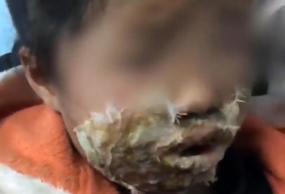 She was taken to hospital near her home in Anshun City in south-weatern China’s Guizhou Province and diagnosed with serious burn injuries.