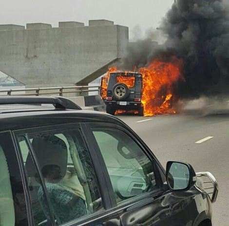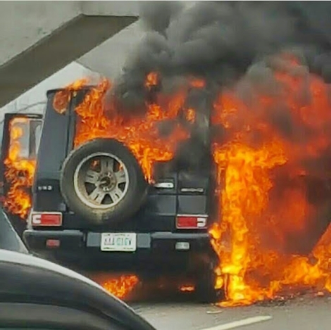 A Nigerian model and beauty queen, Maryam Elisha, narrowly escaped death on Monday, after her luxury Mercedes Benz G-Wagon car went up in flames at the popular Eko Bridge in the commercial city of Lagos.