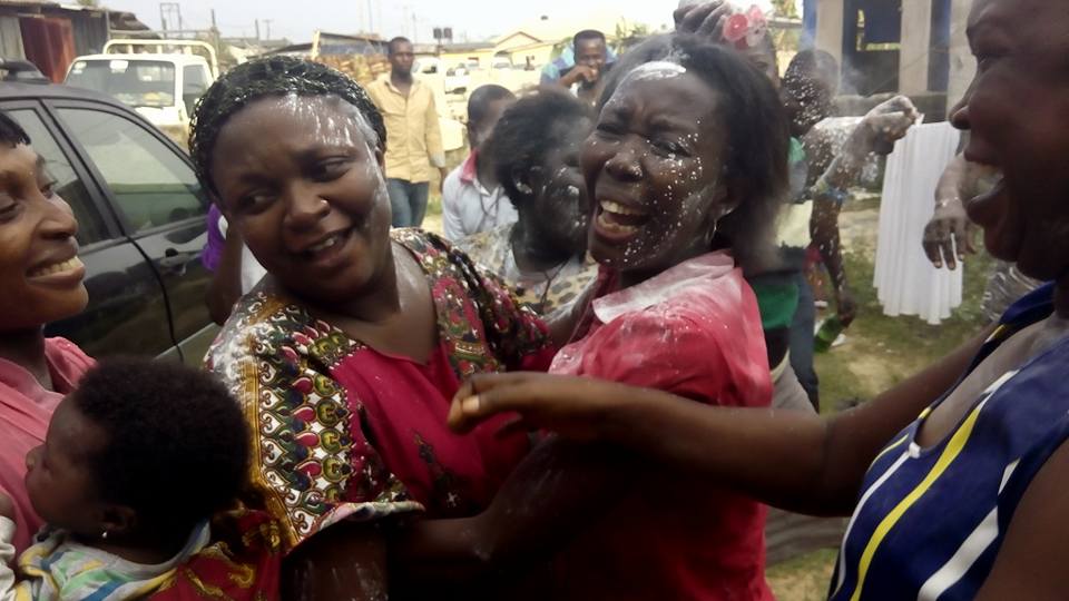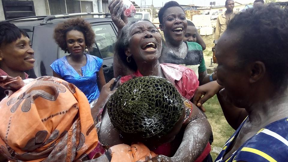 Mrs Babara Oghogho Okiti celebrates with friends after her successful release