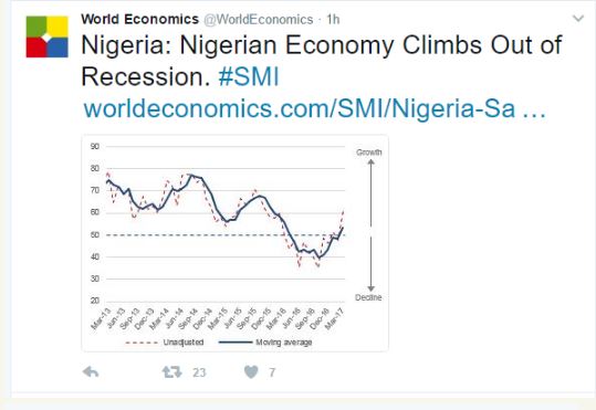 Nigeria's economy has climbed out of recession, according to World Economics.