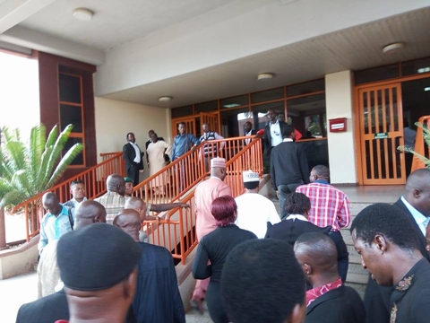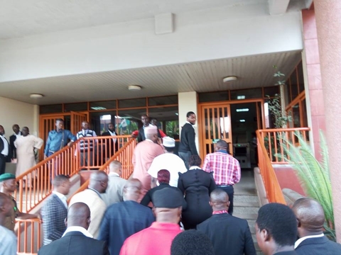 Photos shared on Facebook by Sumner Shagari Sambo, who is a Senior Correspondent and investigative reporter of TVC News, have confirmed the report as the images show the lawmaker with his suppoters storming the FCT High Court to take legal action.