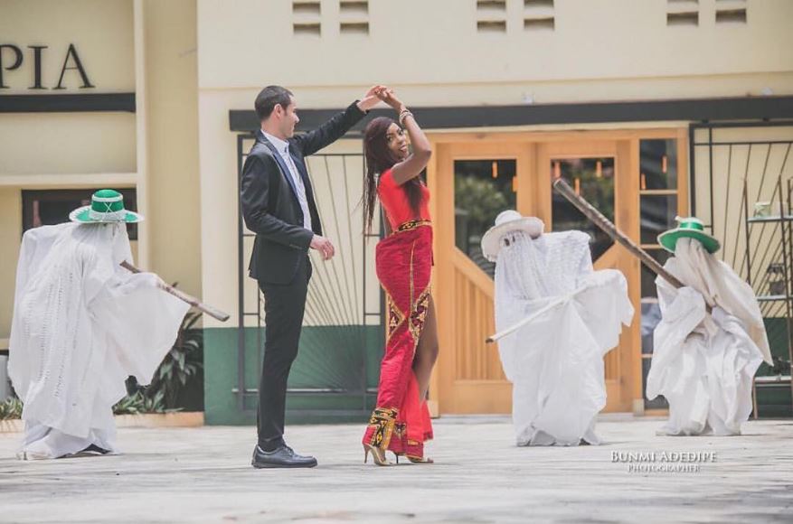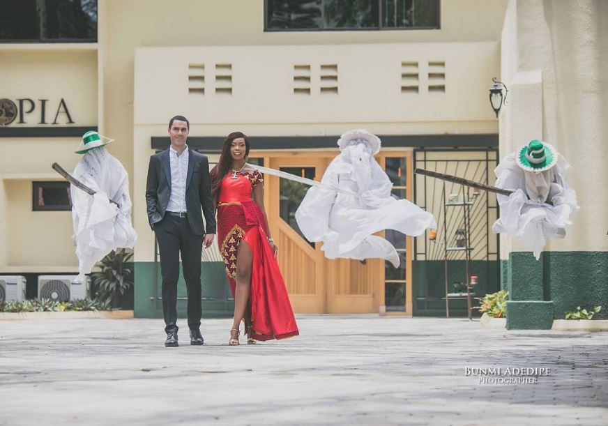 The Nigerian lady and pretty bride-to-be, Novi wanted to show her Spanish heartthrob, Javier, how rich our African culture really is, so she went on about getting Eyo dancers for their lovely pre-wedding shoot.