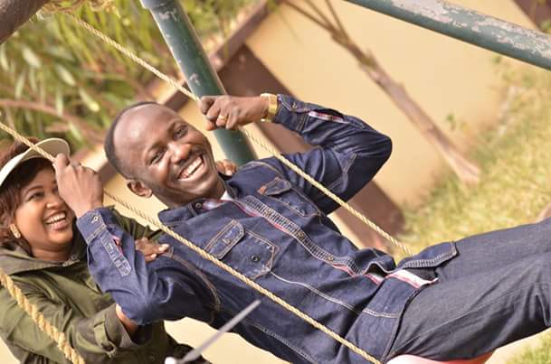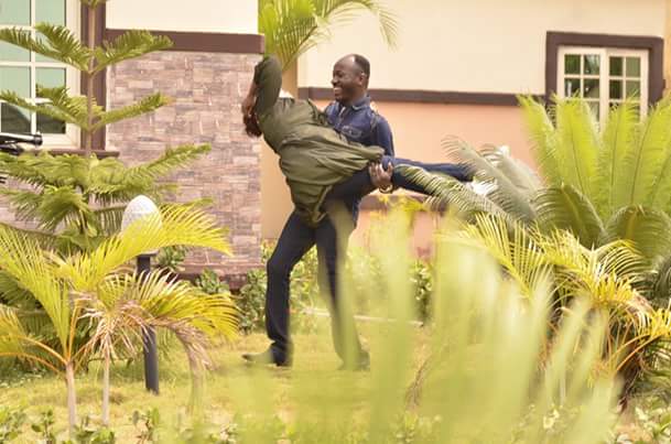 Controversial man of God, Apostle Johnson Suleman who is also the founder of Omega Fire Ministries has continued the public display of affection for his wife as he is once again caught playing at the garden.
