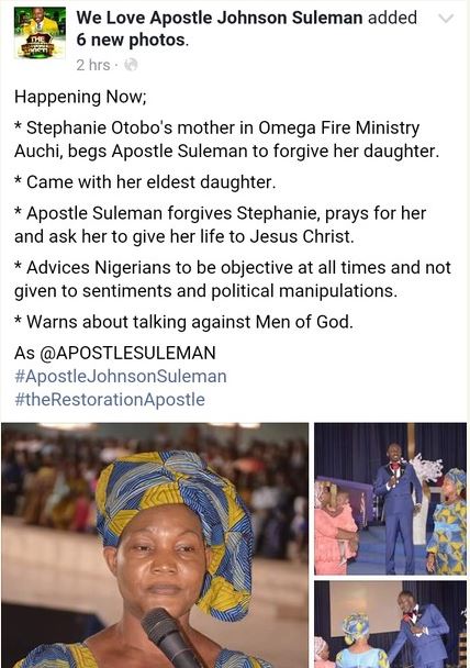 Stephanie Otobo's Mother & Sister Beg Apostle Suleman for Forgiveness in Church (Photos+Video)