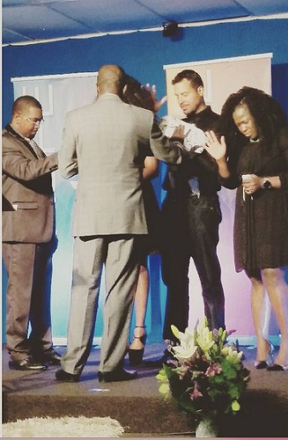 The actress and her American hubby took their son to Church yesterday to be dedicated to God.