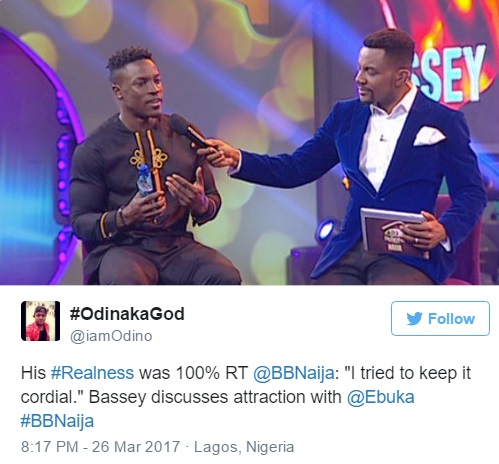 Bassey was also keen to point out that he "has a girlfriend" and he was quick to quash any lingering hopes that Uriel and Debie-Rise might have on the fierce competitor and now ex-Housemate, Bassey.