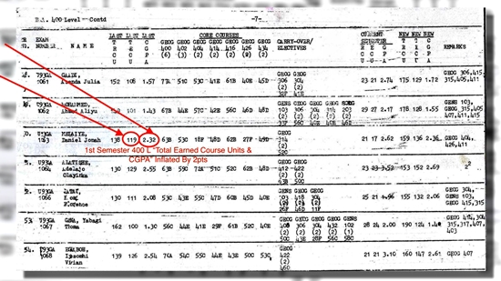 "First, the course was carried over to the 4th year, and then it disappeared from his grades. Dino and his HOD manipulated and fraudulently added 2 units towards the "Total Earned Course Units (TECU) in his 4th year."