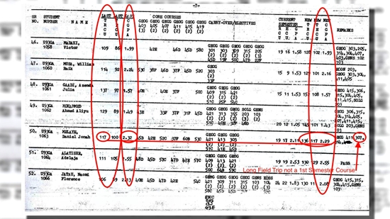 "The documents released by Exam Officers of the Geography Department at ABU shows Mr. Daniel "Dino" Jonah Melaye couldn't have graduated -"GEOG 307" Long Field Trip is a compulsory course at the department. Melaye never passed "GEOG 307" according to these official records.