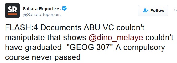 Nigerian investigative journalist and the founder of SaharaReporters, has released some official documents while alleging that Senator Dino Melaye never graduated from the ABU, Zaria.