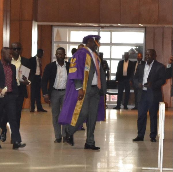 The senator whose first degree had come under scrutiny in the recent past walked in to the red chamber clad in the full academic regalia and smiling as cameras shut away.