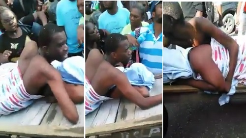 A married woman and her boyfriend got the disgrace of a lifetime after getting stuck during lovemaking. The two who couldn't endure the terrible encounter cried out for help as people gathered to watch the show.