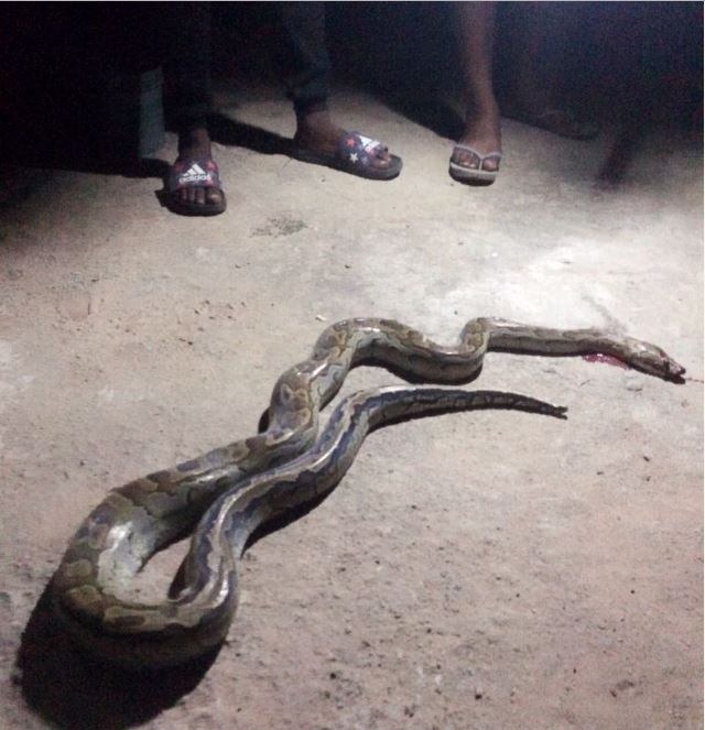 Some students of the Ekiti State University killed a big python snake in the night as it crept into their hostel.