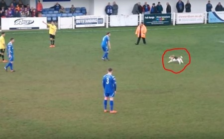 The dog appeared close to capture on a few occasions but kept running around the field and the players and referee could only look in amazement.