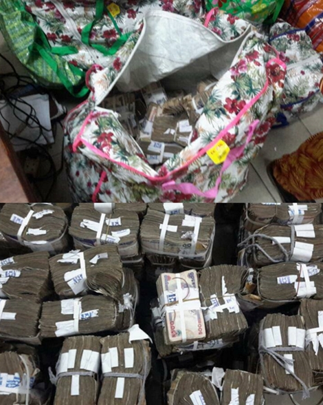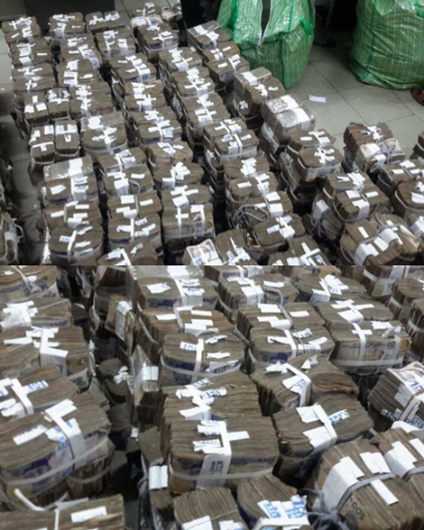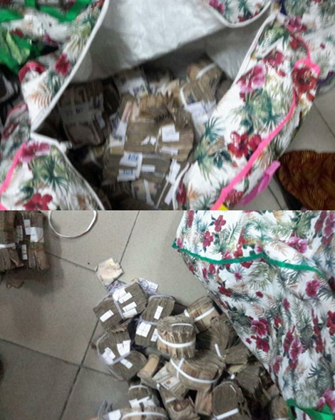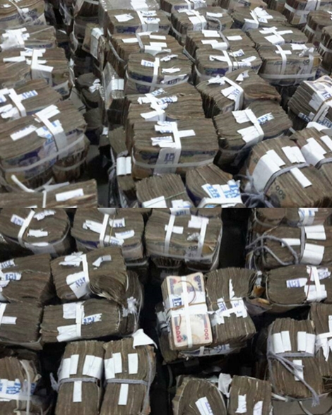 uncovered yet another large sum of suspected laundered money to the tune of N448,850,000 in a shop at LEGICO Shopping Plaza, Ahmadu Bello Way, Victoria Island, Lagos. The money stashed in several Ghana Must Go bags were in N500 and N1000 denominations, hidden in a shop awaiting conversion into foreign currency.