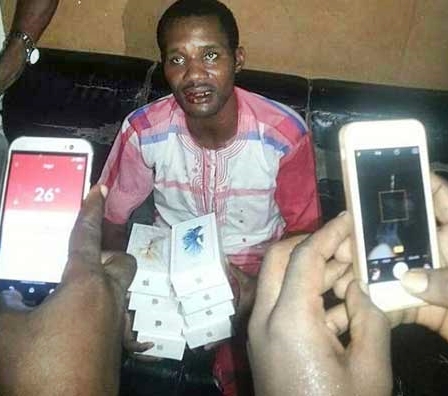 File photo: Seun Egbegbe when he was caught stealing iPhones in Ikeja