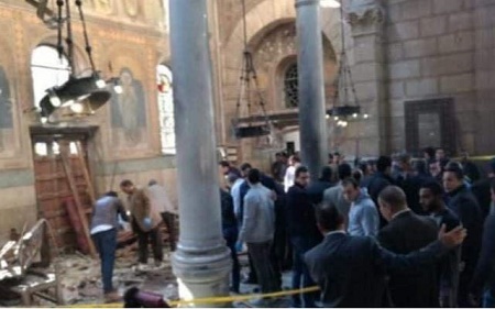 A CNN report has shown that a powerful blast rippled through a Palm Sunday service at a Coptic Christian church in northern Egypt, killing 25 people and wounding 60 others.