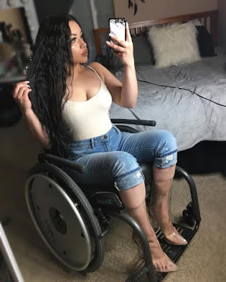 The s*x appealing photos of of an Instagram hot model identified as Elle Maries, who is confined to a wheelchair and also is paraplegic, have emerged online and has set the internet awash.