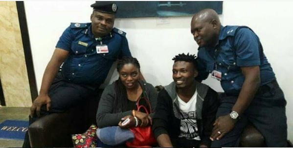 The Delta state born rapper landed at the Murtala Muhammed International Airport with the first runner-up, Bisola.
