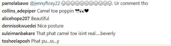 The seeming alluring picture has ostensibly set her social media page on fire as pant exposure tagged 'camel toe' has become the talk of her page.